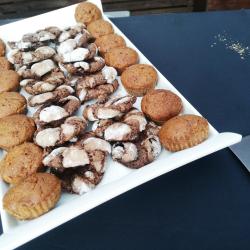 Je propose une gamme variée de produits salés : verrines, bouchées (sans gluten), moelleux, feuilletés. Ainsi qu’une gamme variée de produits sucrés : moelleux, cookies, craquelés et verrines.
