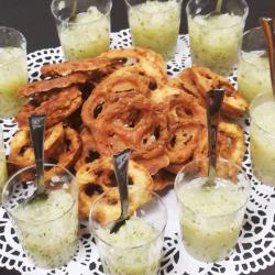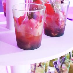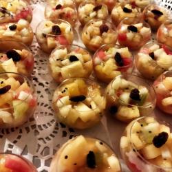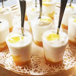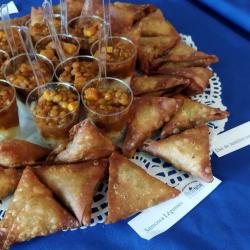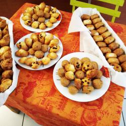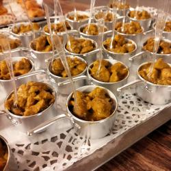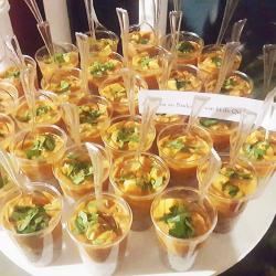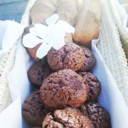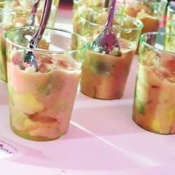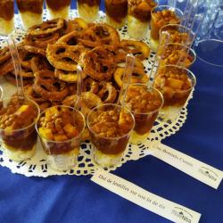 Je propose une gamme variée de produits salés : verrines, bouchées (sans gluten), moelleux, feuilletés. Ainsi qu’une gamme variée de produits sucrés : moelleux, cookies, craquelés et verrines.